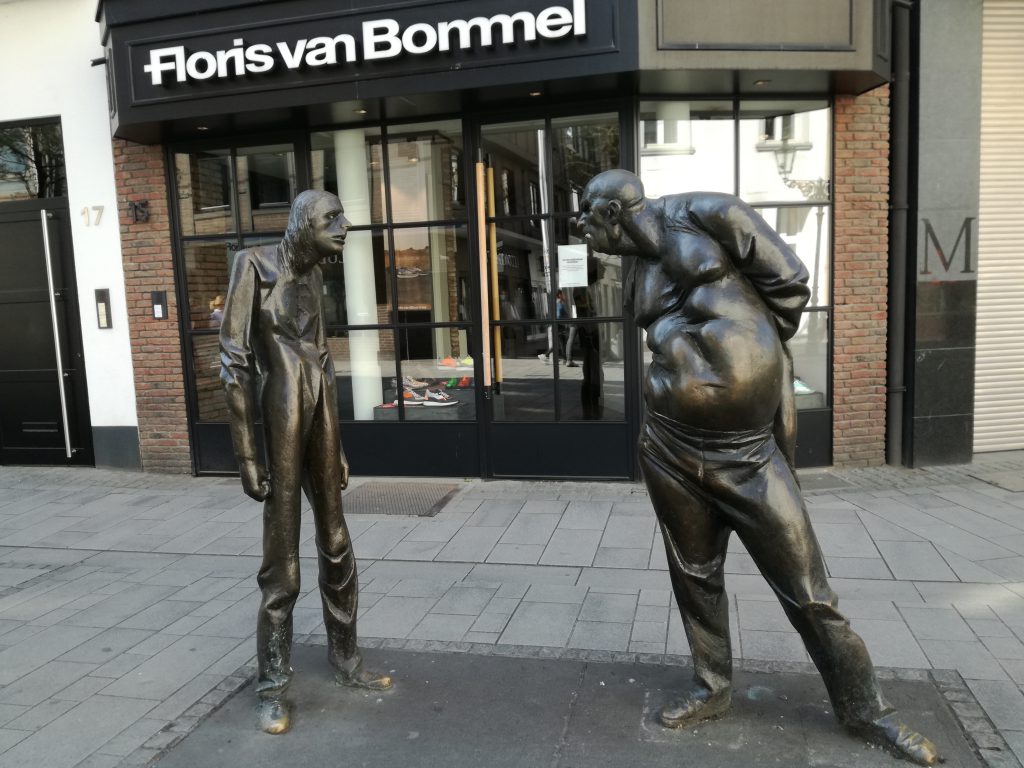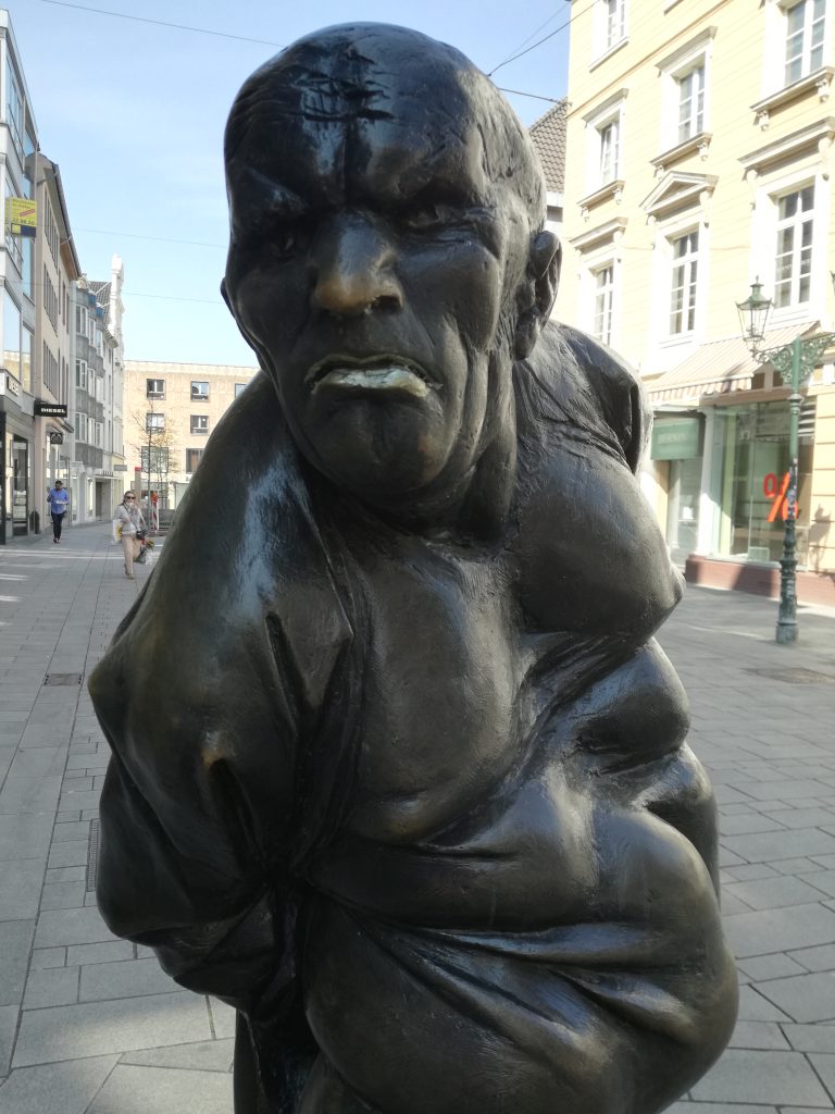 Über diese Beiden sagen viele, sie seien die Düsseldorfer Versionen von Tünnes und Schäl. Stimmt definitiv nicht, denn die Beiden zeigen aber keine von deren Attribute – zum Beispiel das Schielen oder der Vatermörderkragen. Es ist auch nicht bekannt, ob wahre Düsseldorfer Originale als Motiv, Vorbild oder Inspiration dienten. Was ich weiß ist, dass sie oft fotografiert werden. Sie sind perfekt für ein humorvolles Foto auf Instagram und Co: Man stellt sich in die Mitte zwischen die beiden Streithähne und versucht, sie auseinanderzuhalten, stellt sich auf eine Seite und streitet mit… da sind der Fantasie der Vorbeigehenden keine Grenzen gesetzt.