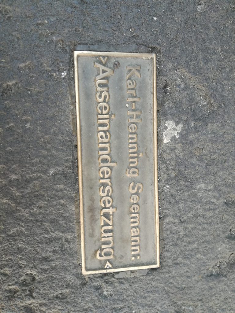 Ihr Schöpfer war der Bildhauer Karl-Henning Seemann, von 1974 bis 1999 Professor an der Kunstakademie in Stuttgart. Er schuf zahlreiche Figuren für den öffentlichen Raum. Dabei überzeichnete die menschlichen Charaktere, oftmals mit einem herrlich ironischen Blick – genau wie hier bei der „Auseinandersetzung“.