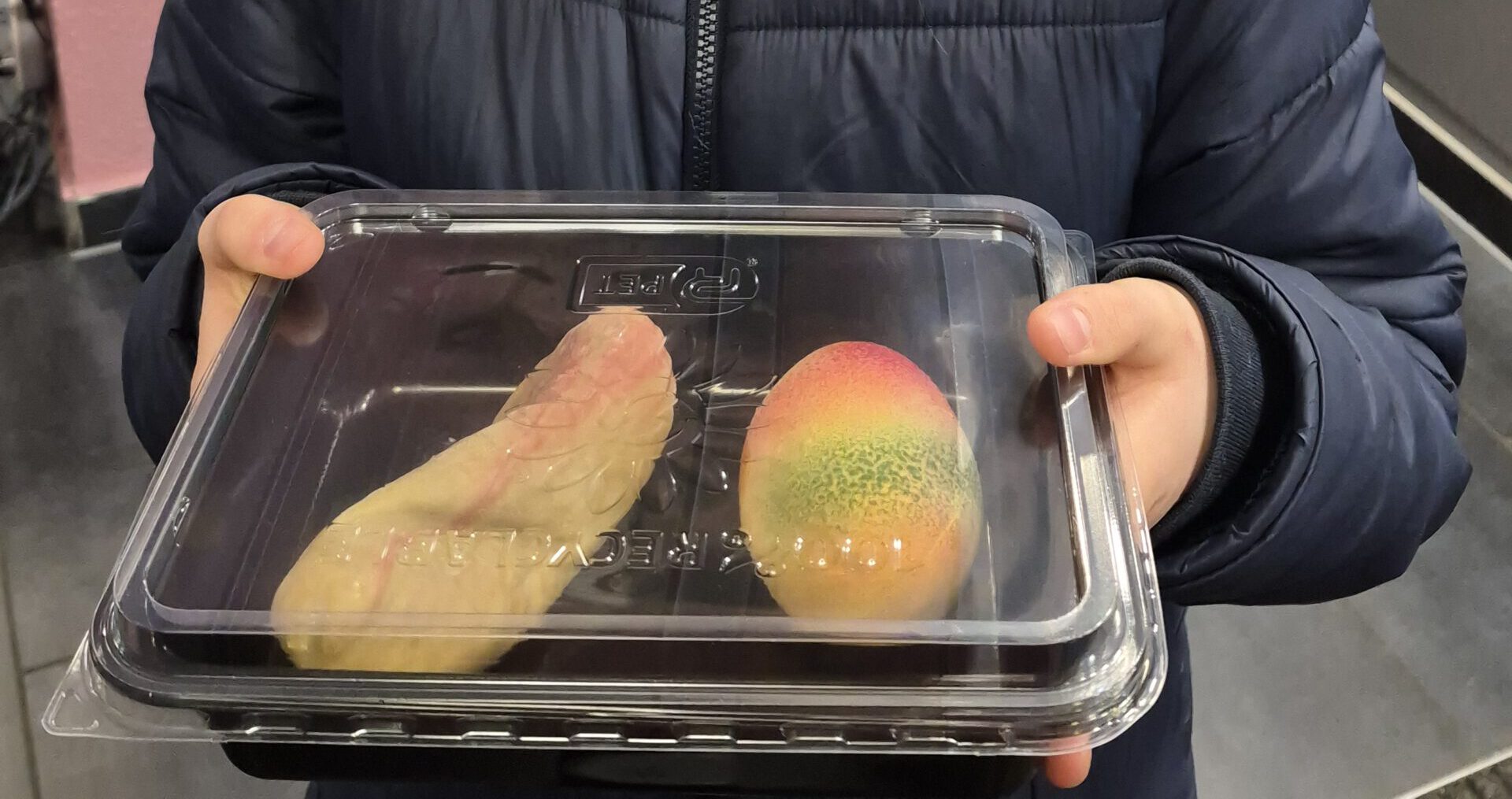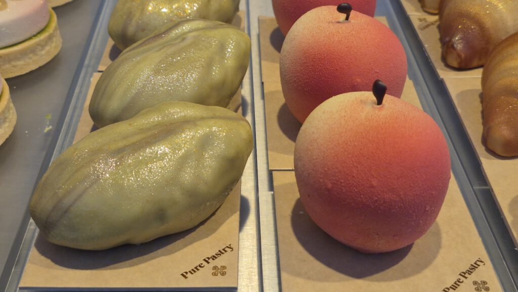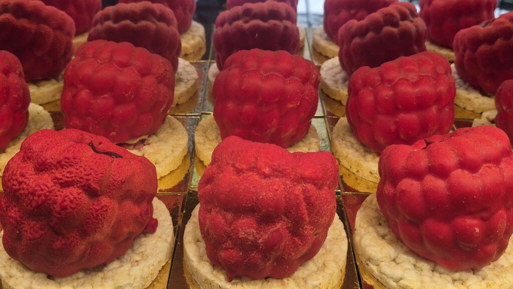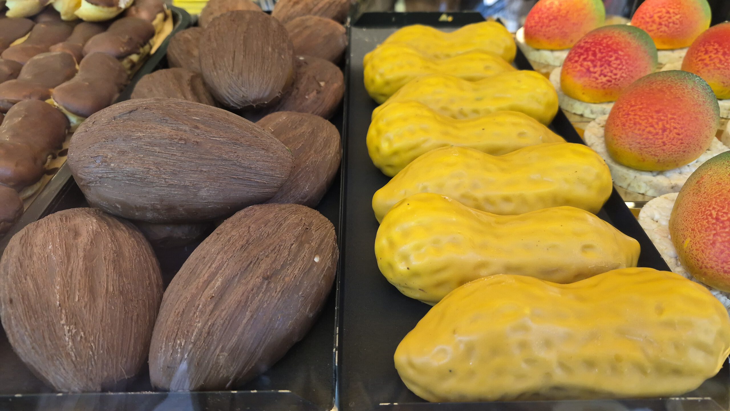 Bisher hielt ich das immer für eine Spezialität des kreativen Tim Tegtmeyer. Aber weit gefehlt, wie mich neulich meine 12-jährige Nichte aufklärte. Es sind von Cédric Grolet inspirierte Früchte. Cédric Grolet ist Patissier in Paris. Viele Jahre lang sorgte er im noblen Hotel Le Meurice für höchstklassige Törtchen und Kuchen – auch heute noch. Dann machte er sich zusätzlich selbstständig. Seine Spezialität ist täuschend echt aussehendes Obst. Die äußere Hülle ist passend gefärbte Schokolade, drinnen stecken edle Crèmes, Mousses und Fruchtkerne.