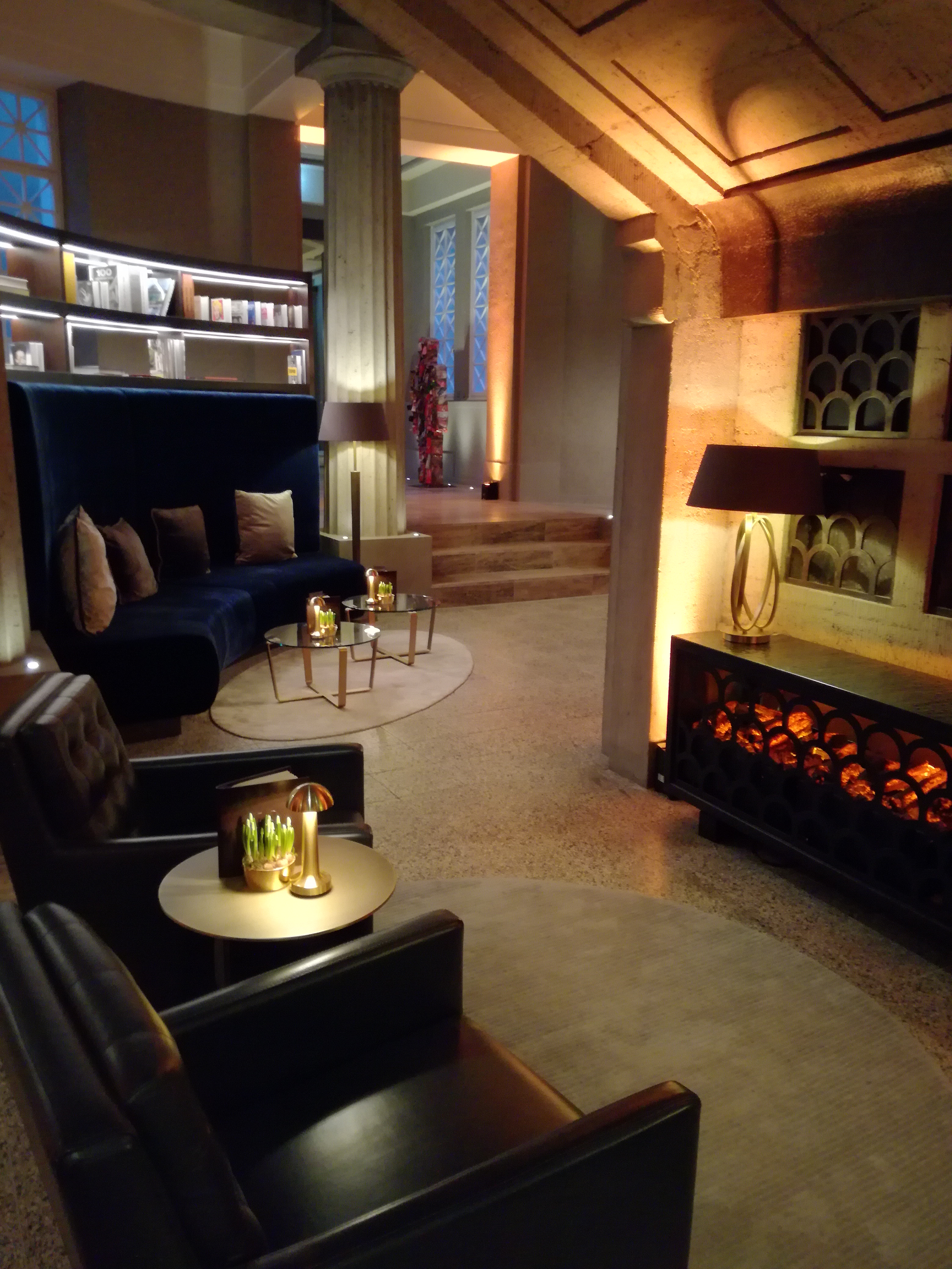 Ganz so pompös und herrschaftlich ist mein privates Wohnzimmer nicht. Bei mir kommt das Klavierspiel aus der Konserve. Und natürlich kommt zuhause auch keine Bedienung. Aber ich muss es zugeben: Das AndreasQuartier hat es tatsächlich geschafft, in den großen und denkmalgeschützen Treppenbereich des ehemaligen Amts- und Landgerichts eine veritable Wohnzimmer-Atmosphäre zu zaubern. Respekt!