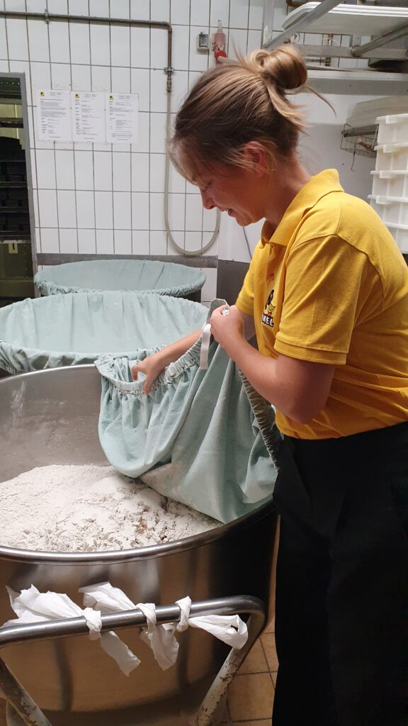 Der erste Bäcker startet seine Frühschicht um Mitternacht, um 3:30 Uhr kommen die Kollegen dazu. Die Spätschicht beginnt um 7 Uhr früh. Für mich „Nachteule“ sind das utopische Arbeitszeiten ;)