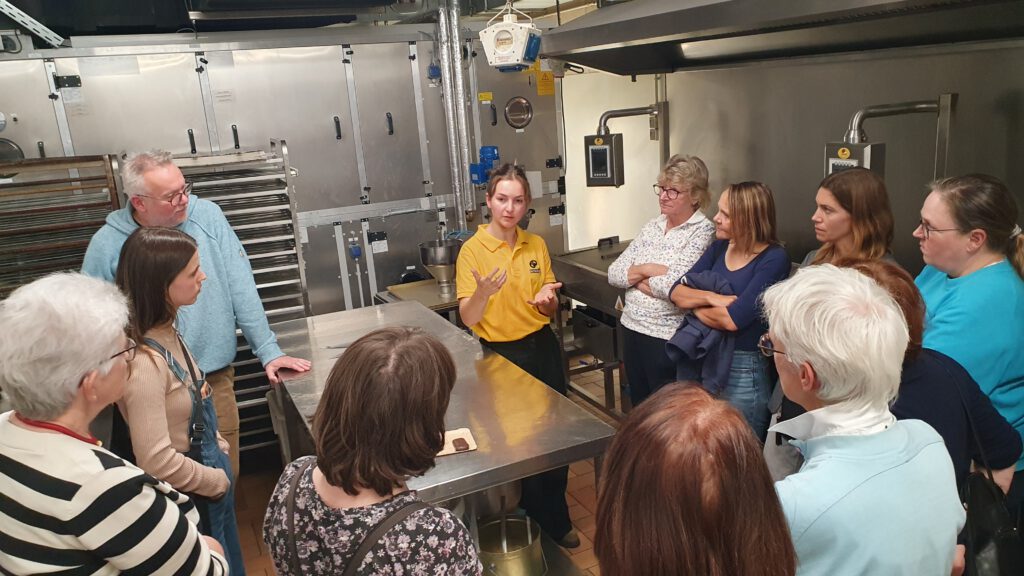Sie gab auch einen kleinen Einblick in die wirtschaftliche Situation einer handwerklichen Bäckerei: Die Hälfte des Umsatzes geht für Personalkosten drauf. Denn immerhin hat sie 110 Mitarbeitende, davon allein 35 Bäcker. 12 Auszubildende in allen drei Ausbildungsjahren lernen das Handwerk bei Hinkel.