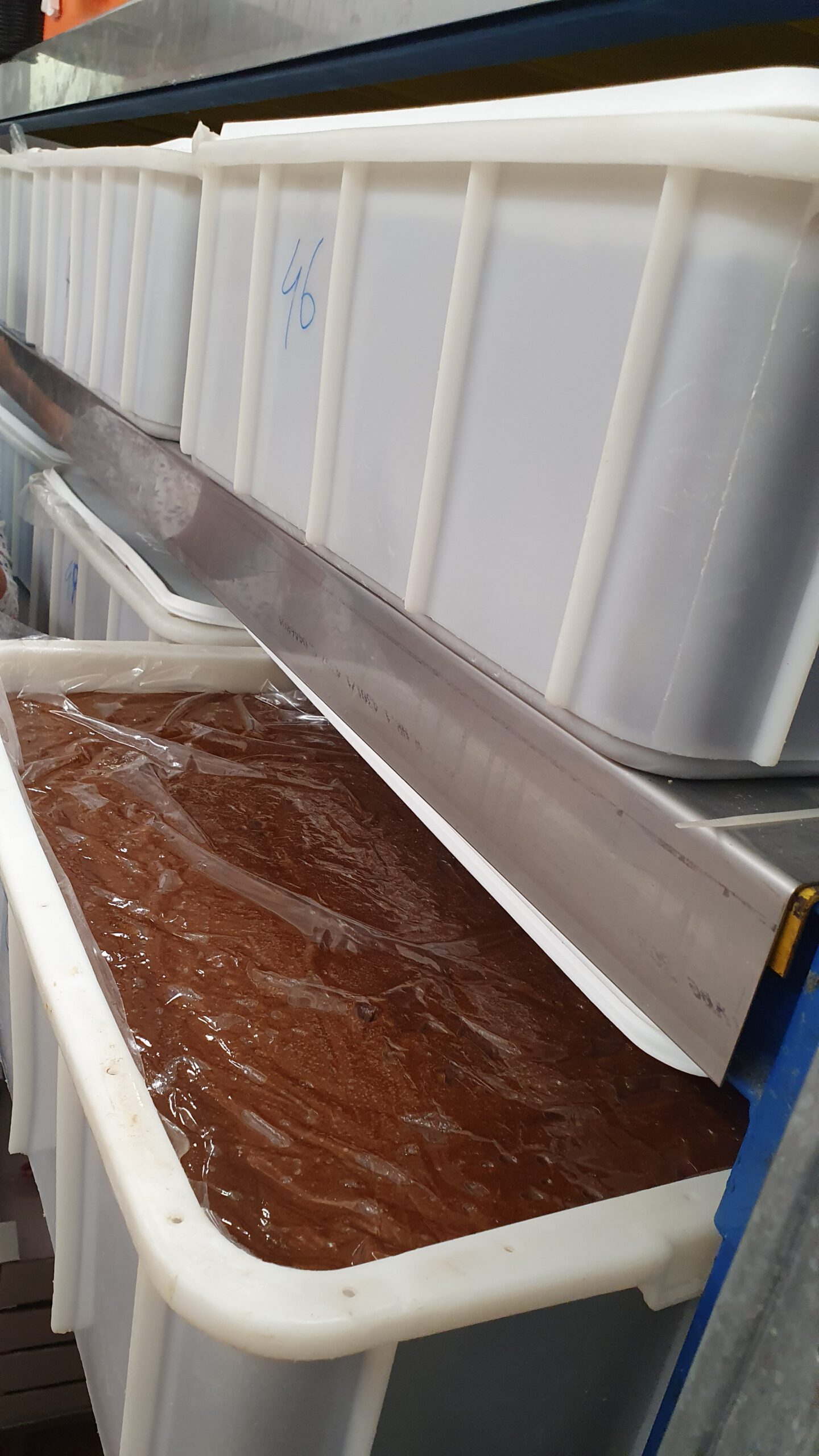 Ab Frühherbst stehen in einem Regal große Plastikwannen voller dunkler Teigmasse: Um eine gute Printe zu werden, muss der Teig mindestens 3 Monate ruhen. Dafür findet sich Platz – trotz der räumlichen Enge. Wat mutt, dat mutt – hier gibt man Alles für die höchste Qualität.
