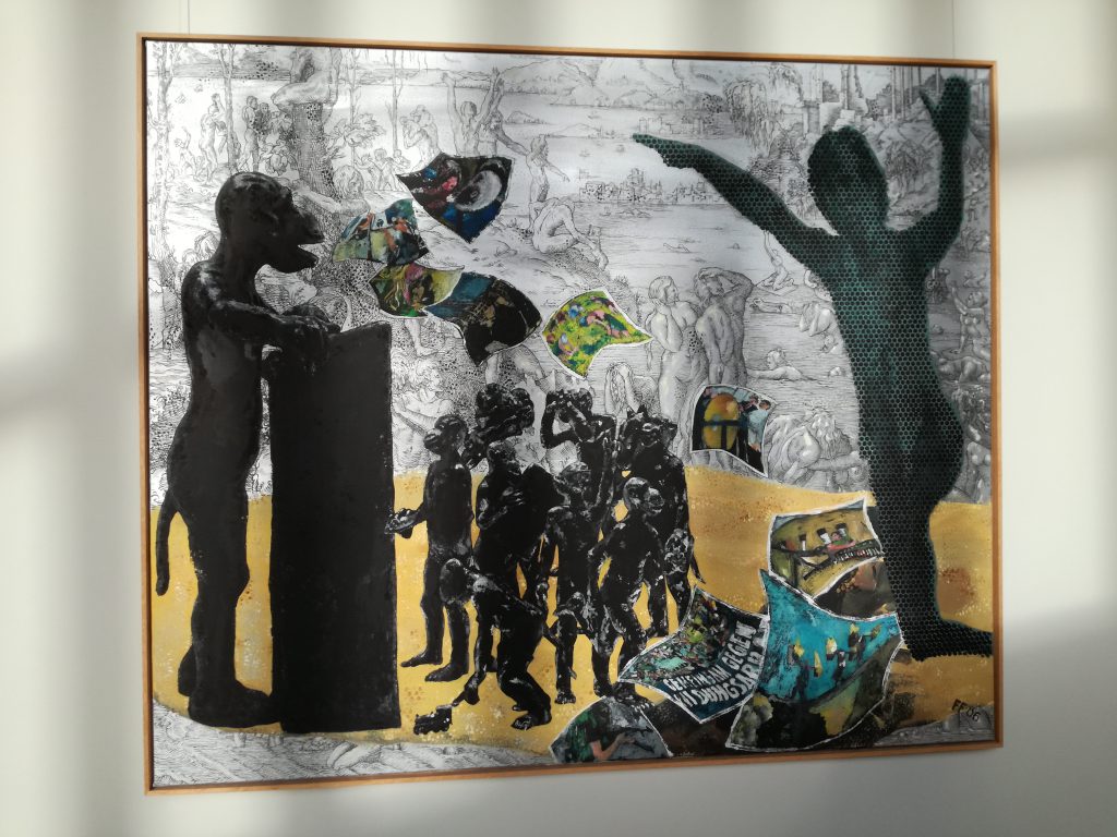 Klar erkennbar anhand des Affen auf der linken Seite ist ein Werk von Jörg Immendorff.