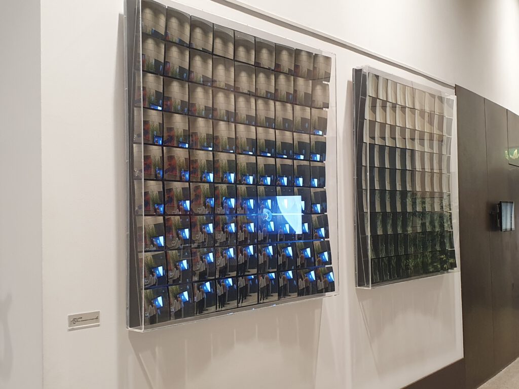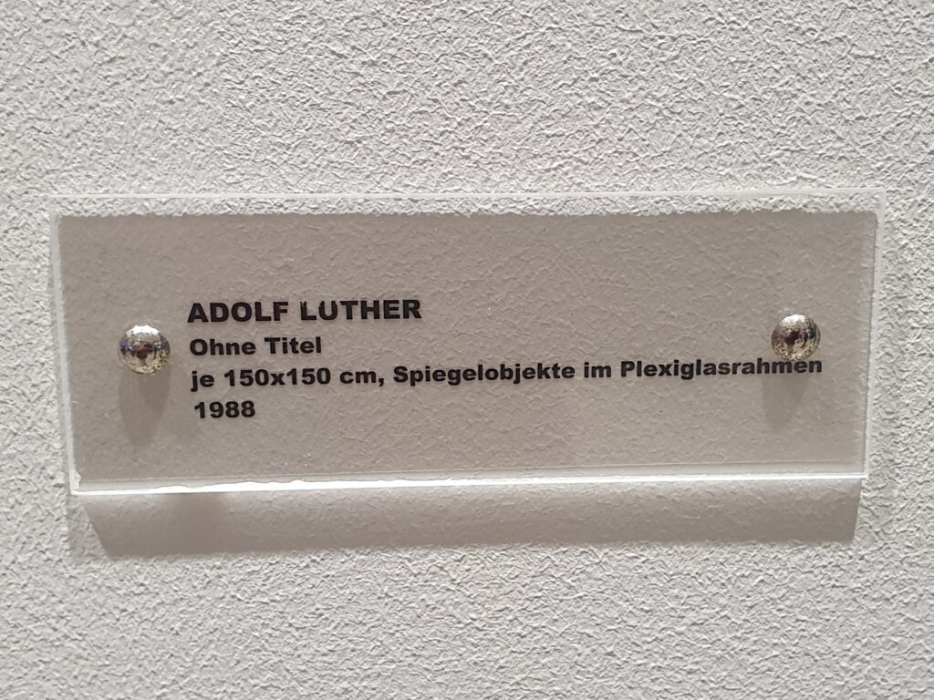 Adolf Luther – ein herausragender Vertreter der Op-Art – der optischen Kunst – ist mit den für ihn typischen Spiegeln in der Landtagssammlung vertreten. Das linke Werk besteht aus „ausgebeulten“ spiegelnden Quadraten, das recht aus Hohlspiegeln. Diese Spiegel regen zum Betrachten der verzerrten Umwelt an.