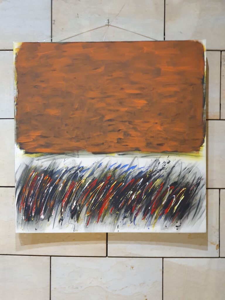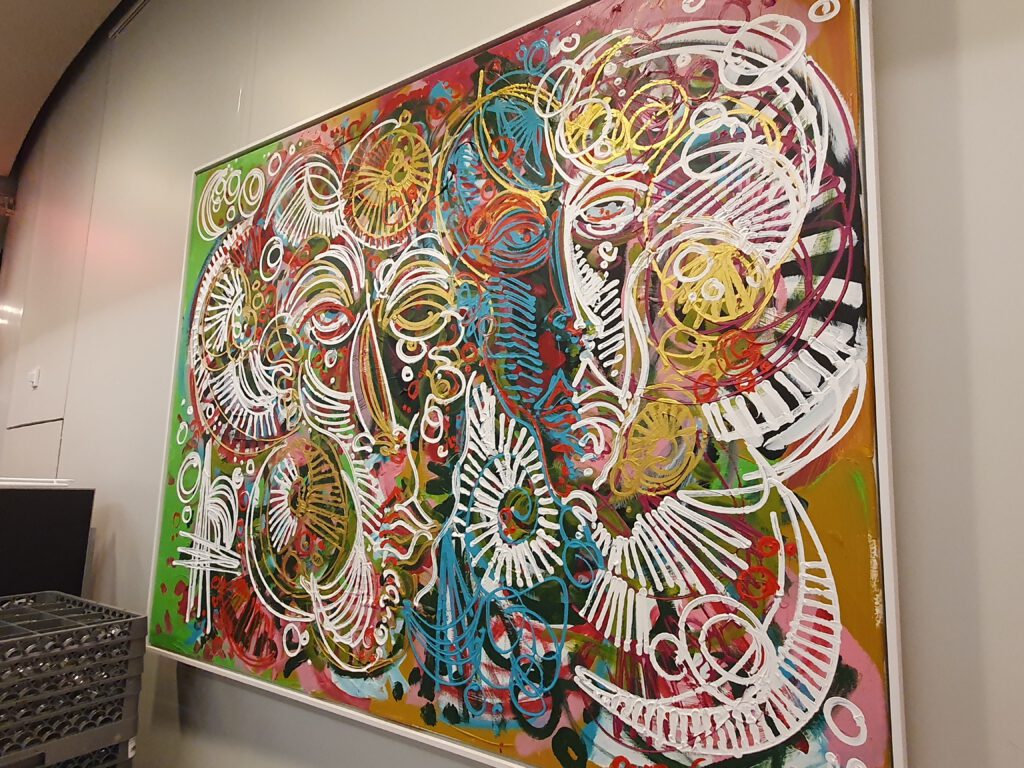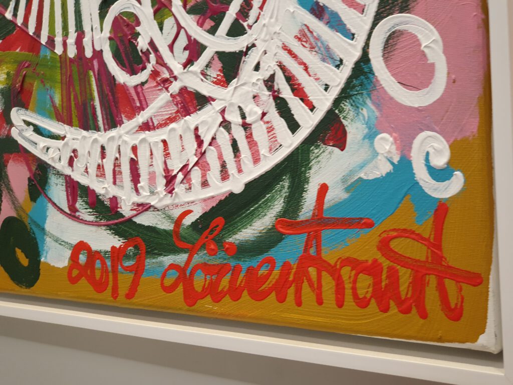 Schön bunt hingegen ist das große Bild von Leon Löwentraut. Der Neusser verkaufte seine Kunst bereits als Jugendlicher für horrende Summen, war Unesco-Kunstbotschafter … und seit man ihn nicht mehr als Kunst-Wunderkind vermarkten kann, ist es medial deutlich ruhiger um ihn geworden.