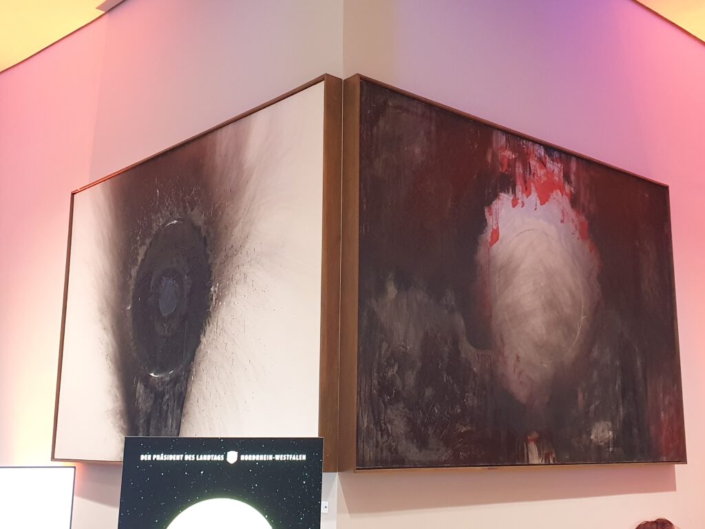 Übers Eck – obwohl ich immer erzähle, der Landtag hätte keine Ecken – hängt ein zweiteiliges Werk von Otto Piene: „Ave und Aurora“. Über einen Besuch in Pienes Feueratelier habe ich hier geschrieben.