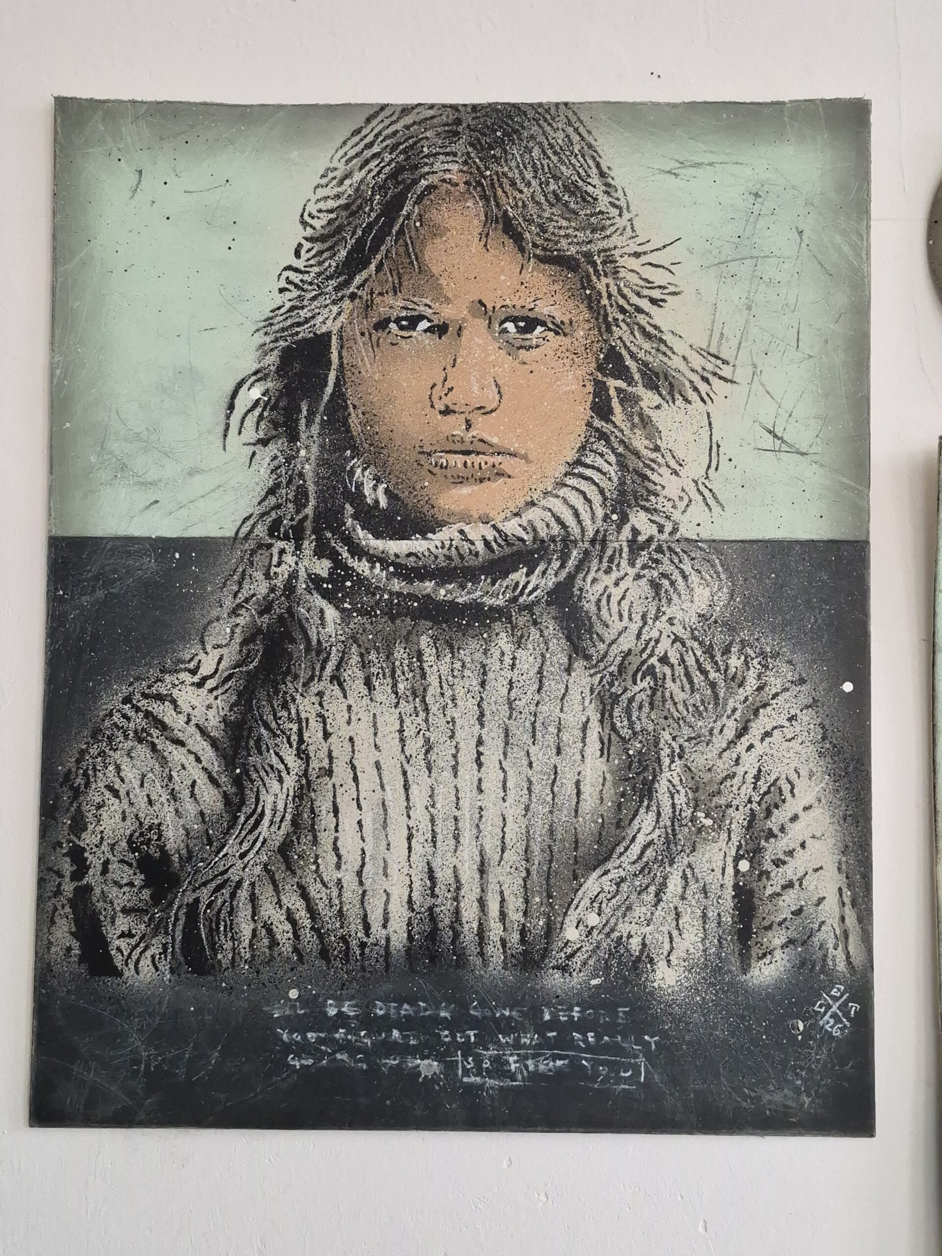 Unweit von Rosskothens Galerie „Pretty Portal“ sind zwei großartige Murals von L.E.T. Das eine heißt „Sweet Deam o’Mine“ und das andere trägt den Titel „FOR THE BRAVE AND DISPLACED“. Beide finden sich in der Friedrichstraße am S-Bahnhof Bilk. Im Sommer 2022 wurde die Unterführung unter der der Brücke – direkt gegenüber des Eingangs zur S-Bahn – von Urban-Art-Künstlern gestaltet. Sowohl auf der rechten als auch auf der linken Seite sind Murals von L.E.T.